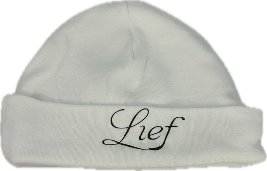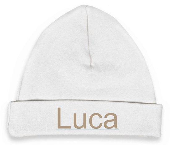 Babymuts wit maat 62-68 met naam geborduurd