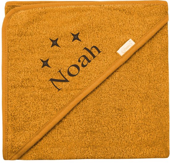 Baby badcape oker geel met naam borduren – Luxe en persoonlijk cadeau